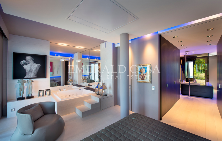 The master bedroom, equipped with a Jacuzzi with lake view, is complemented by a large wardrobe and an elegant en suite bathroom.